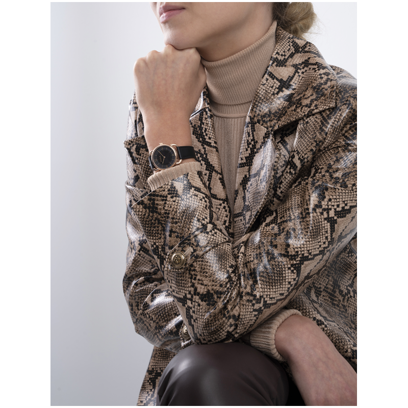 Le cadran noir confère à cette montre une esthétique sophistiquée et polyvalente, tandis que le bracelet en cuir véritable noir ajoute une touche de luxe supplémentaire. Son mécanisme analogique garantit une lecture précise de l'heure, permettant de rester à la fois élégant et ponctuel.