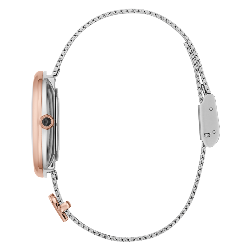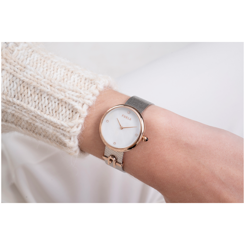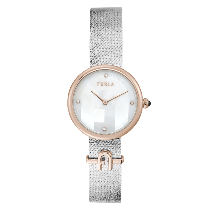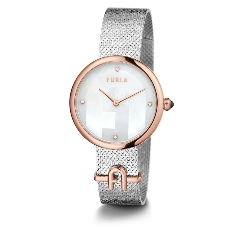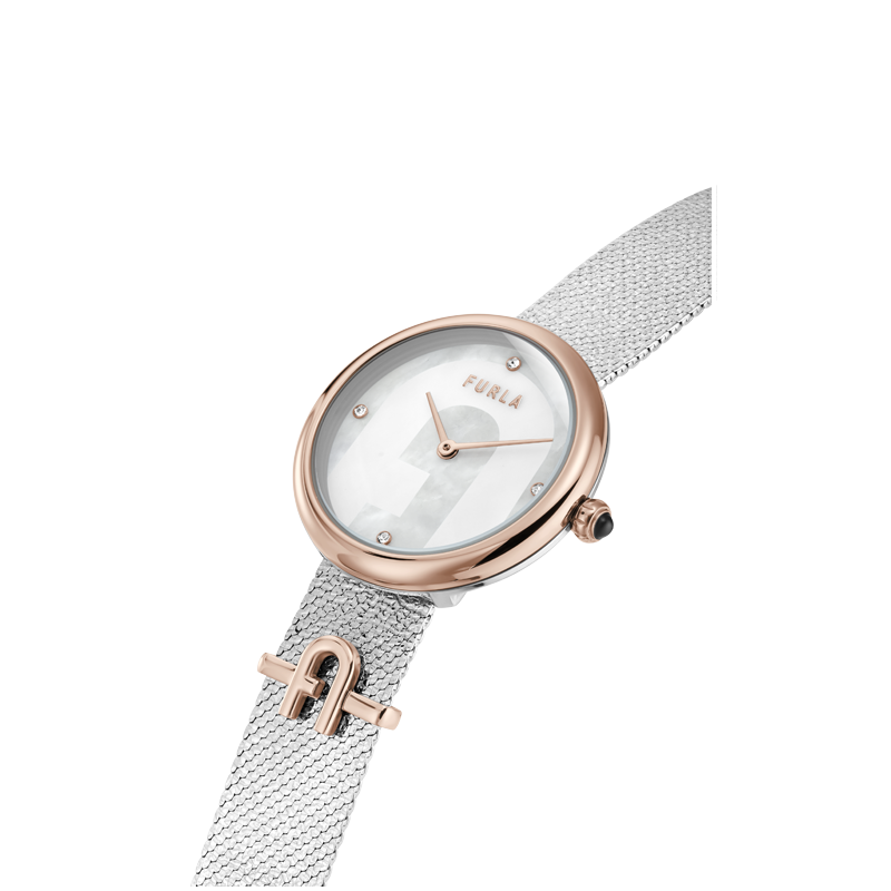 La montre FURLA SMALL LOGO, référence WW00022004L5, est une pièce d'horlogerie élégante et raffinée de la marque italienne Furla. Spécialement conçue pour les femmes, elle arbore un boîtier en acier inoxydable de 32 mm de diamètre, mêlant les couleurs argent et Rose Gold pour un look sophistiqué. Son cadran blanc est clair et facile à lire, avec des index horaires bien visibles et des aiguilles analogiques classiques. Le bracelet en acier inoxydable est doté d'un fermoir à crochet coulissant pour un ajustement parfait. Elle est résistante aux rayures grâce au verre minéral et étanche jusqu'à 50 mètres (5 ATM). Cette montre incarne l'élégance italienne et s'adapte parfaitement à toutes les occasions.