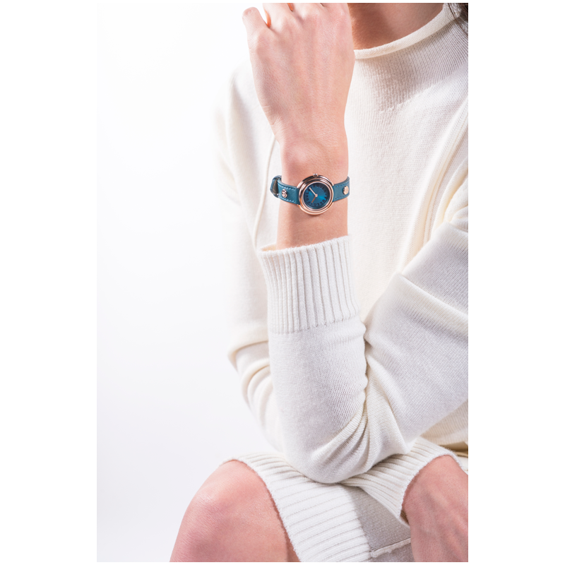 Découvrez la montre Furla WW00031007L3 de la collection "FURLA ICON SHAPE", une création italienne qui allie à la perfection élégance et style contemporain. Avec son boîtier en acier inoxydable rose gold de 29,5 mm, elle incarne la délicatesse et la féminité. Son cadran bleu évoque un ciel sans nuages, assorti au bracelet en cuir véritable bleu, ajoutant une touche de couleur distincte.