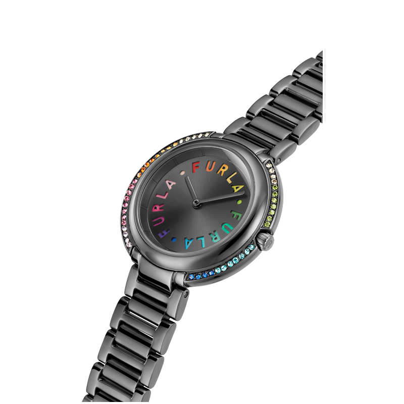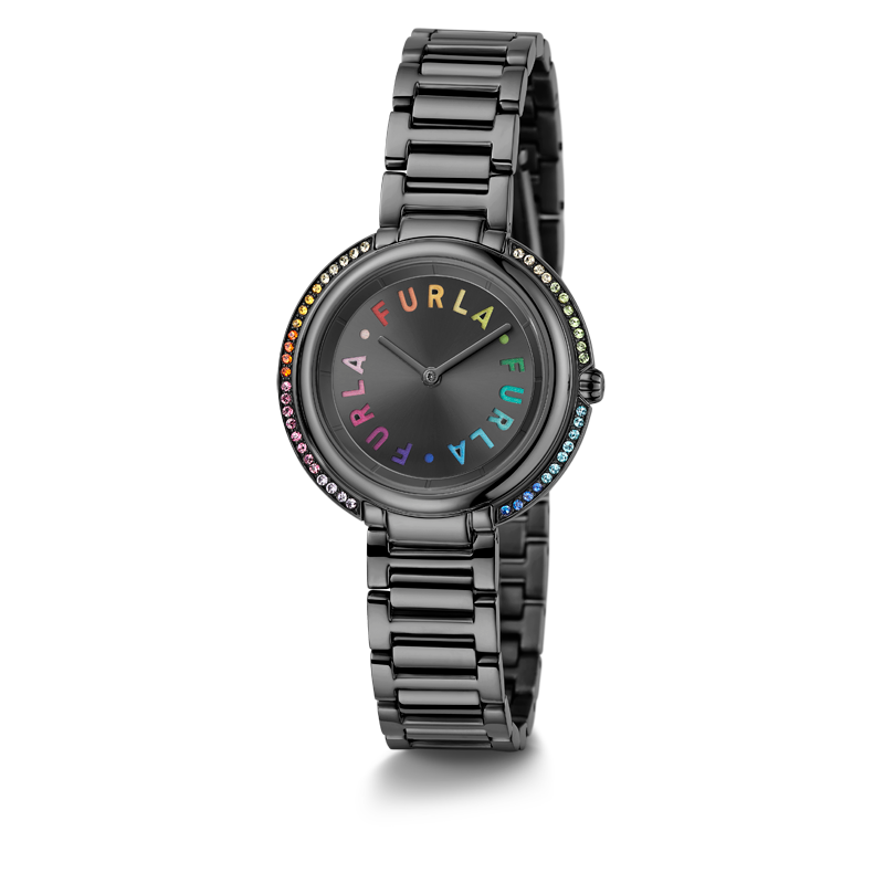 Découvrez la montre Furla WW00032003L7 de la collection "FURLA ICON SHAPE". Cette création italienne incarne l'élégance et le style moderne avec un boîtier en acier inoxydable de 34 mm, un cadran noir sobre et un bracelet en acier inoxydable à la tonalité métal gun, évoquant une esthétique contemporaine et audacieuse.