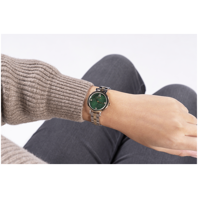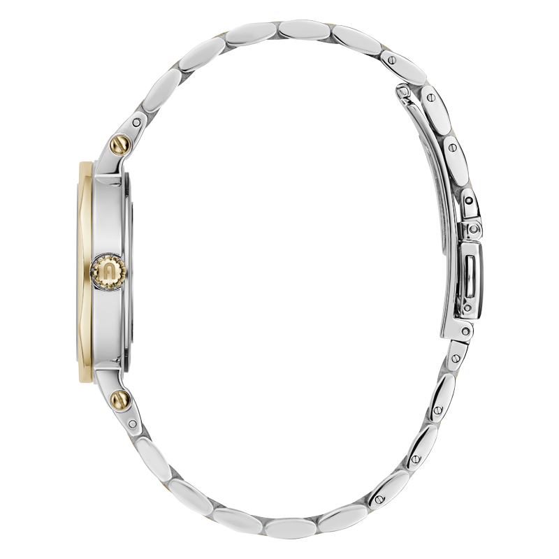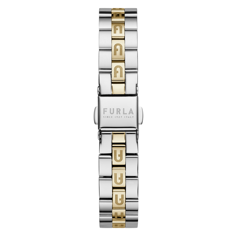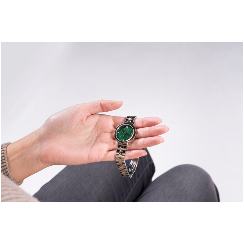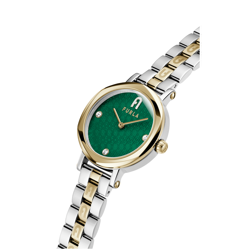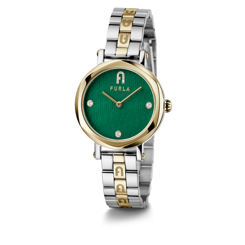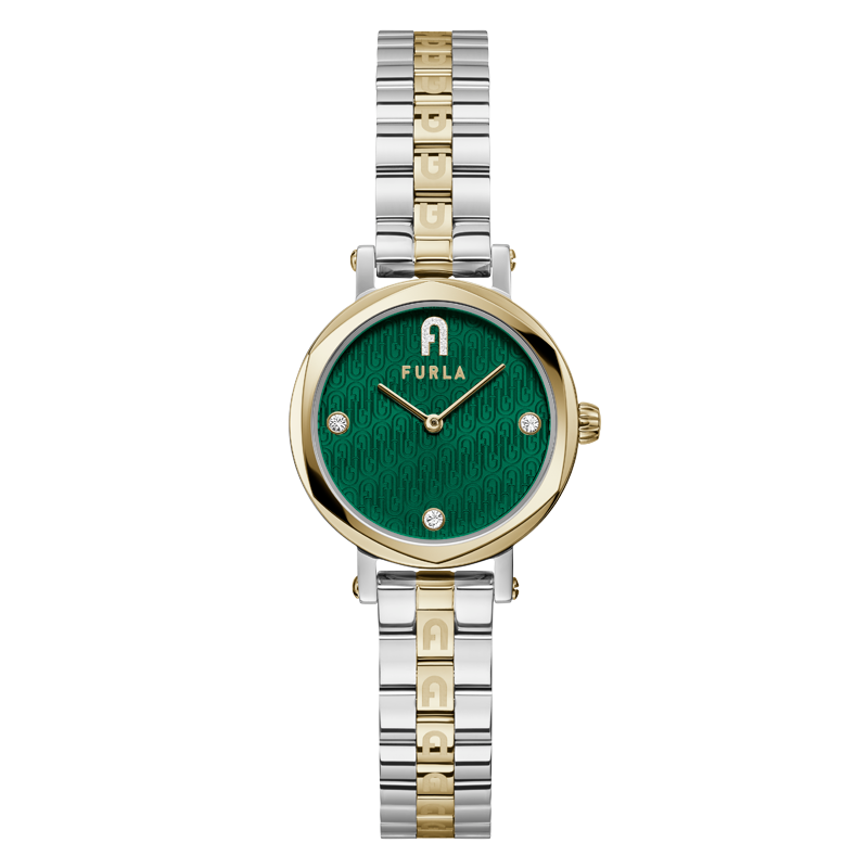 Découvrez la montre Furla WW00033001L4 de la collection "FURLA PETITE SHAPE". Cette montre italienne associe élégance et modernité, avec un boîtier en acier inoxydable argent et gold de 30 mm, un cadran vert rafraîchissant, et un bracelet en acier inoxydable assorti.