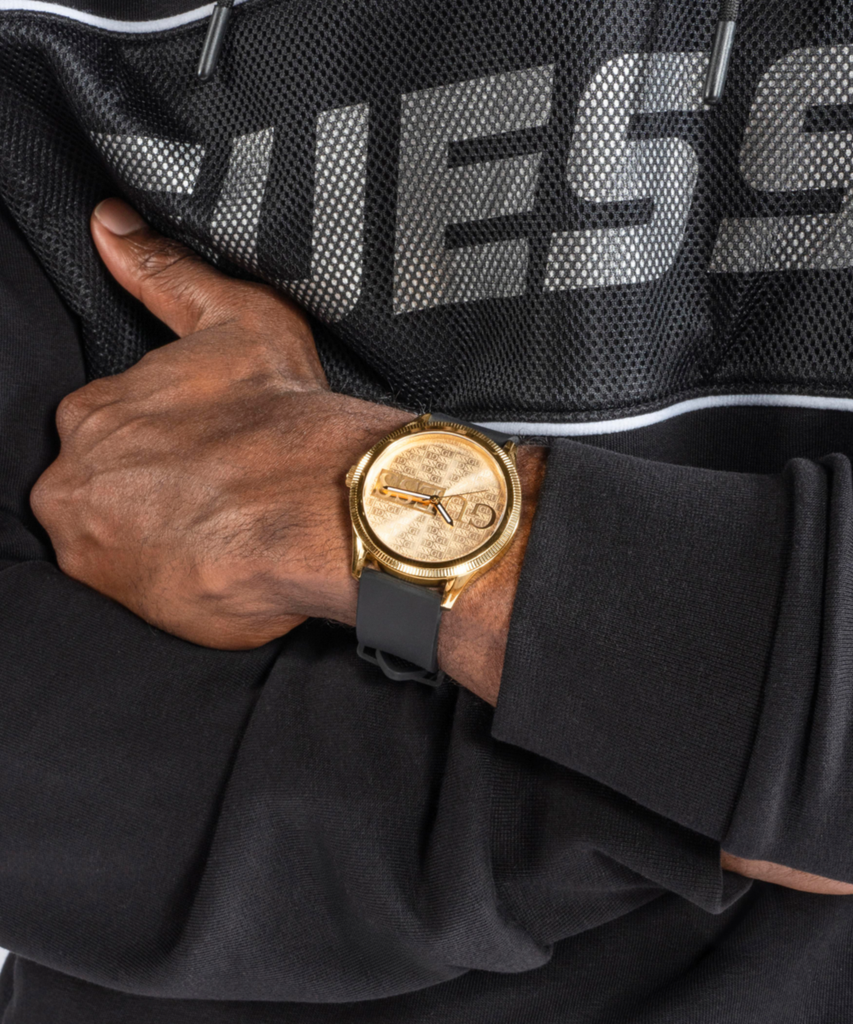 Laissez votre réputation vous précéder avec ce nouveau look GUESS, logo associé à un bracelet en silicone lisse.