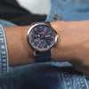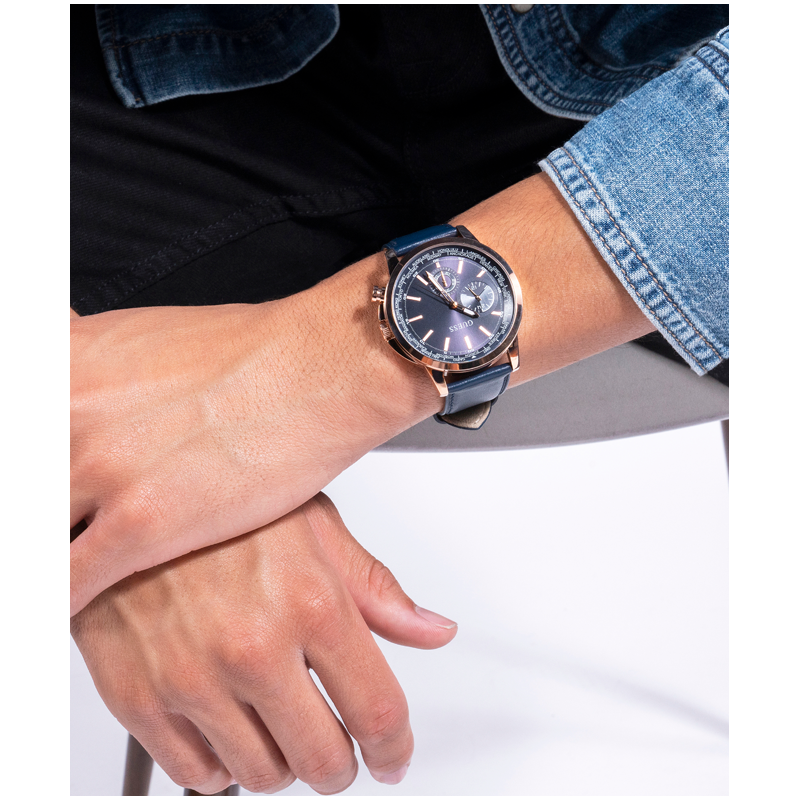 Cette montre au style sportif habillé vous offre une esthétique complète grâce à son détail de couronne asymétrique unique et son bracelet en cuir lisse, pour un look parfait.
