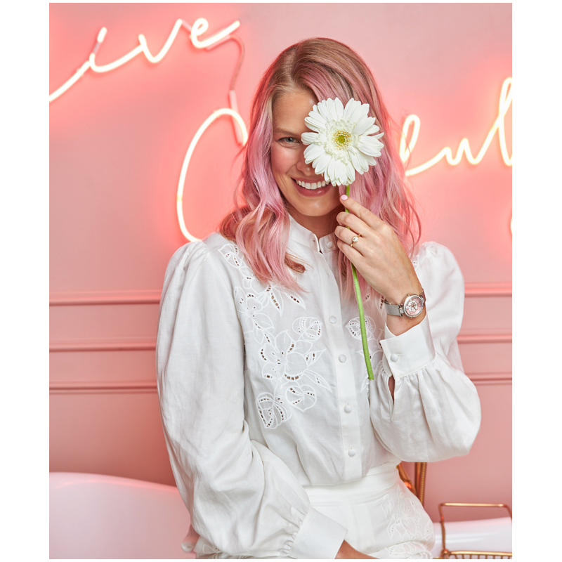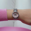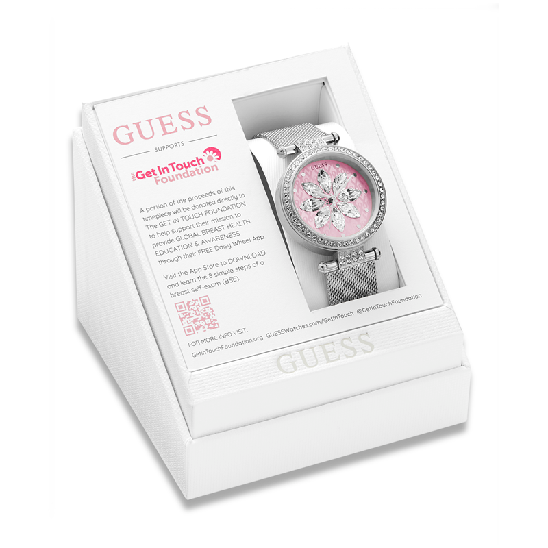 La Sparkling Pink, soutient la sensibilisation à la santé du sein avec 10% des ventes reversées à la fondation Get In Touch. La montre de cette année, co-conçue avec la présidente de GIT, Betsy Nilan, présente un boîtier en acier inoxydable avec un cadran floral en cristal sur un fond rose ruban de cancer du sein répétitif, ainsi qu'un bracelet en maille assorti. Cette montre est livrée dans un emballage spécial avec un boîtier arrière gravé du logo de la fondation GIT.
