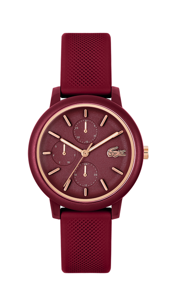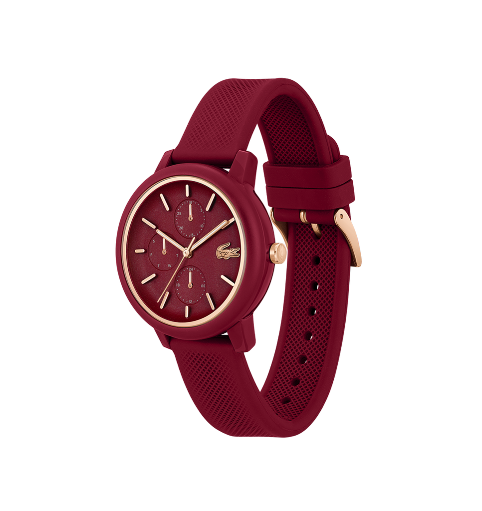 Toute l'essence de la classique Lacoste.12.12 se retrouve dans la Lacoste.12.12 Multifunction, une montre pour femme avec un magnifique cadran incurvé à finition aluminium. Proposée dans des coloris monochromes contemporains, cette montre possède un boîtier léger en résine infusée de nylon et est équipée d'un bracelet en silicone confortable avec un embossage petit piqué. Des aiguilles et des index en métal élégants, des sous-cadrans pour le jour, la date et les 24 heures, ainsi qu'un crocodile signature à 3 heures complètent ce design féminin.