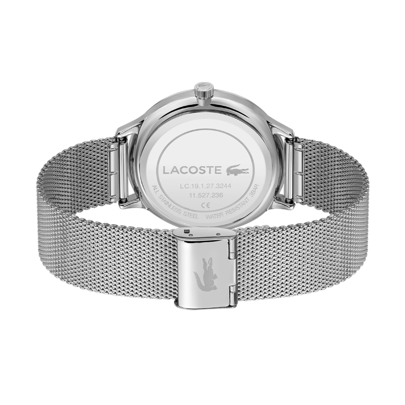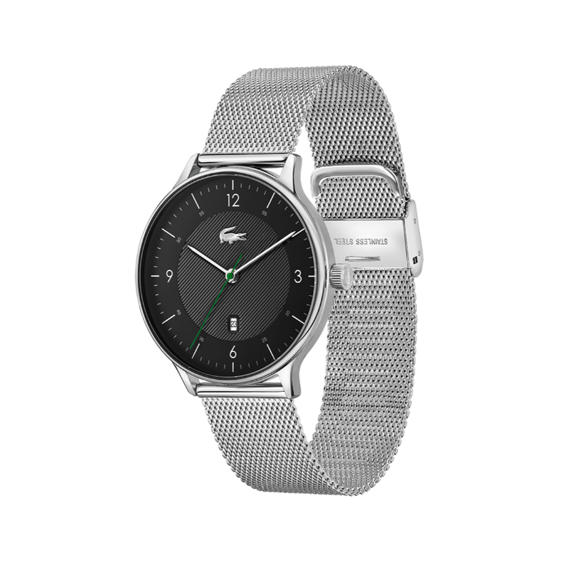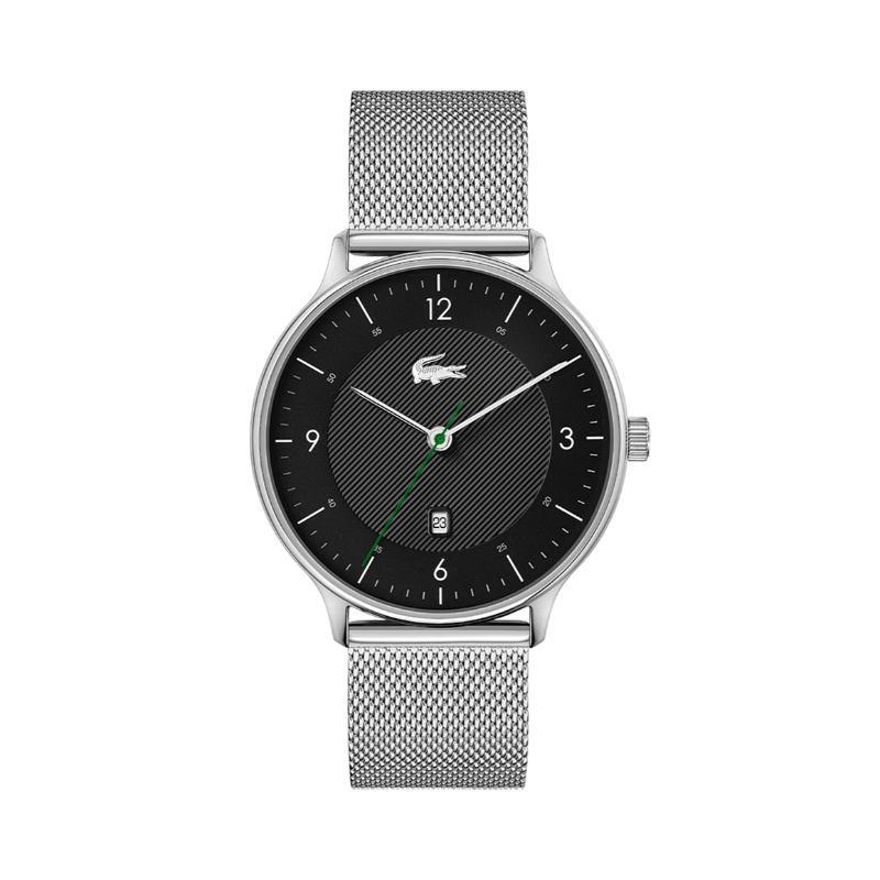 La montre Lacoste Club est un modèle classique pour les hommes, élégant et fin, avec un boîtier poli. Elle est proposée avec un bracelet en maille, un bracelet H-link ou un bracelet en cuir lisse. La zone centrale du cadran semi-brillant présente une rayure diagonale, clin d'œil subtil à l'héritage sportif de la marque, et est ornée du célèbre crocodile emblématique.