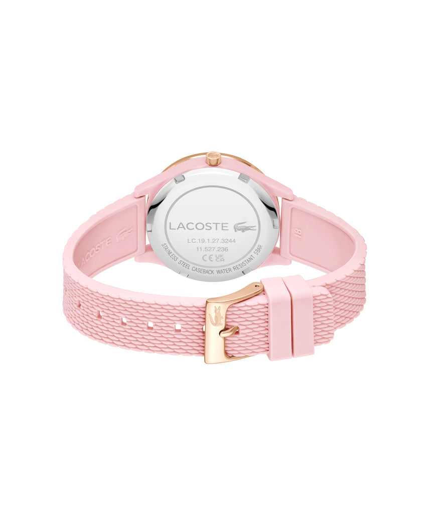 Combinant une esthétique minimaliste avec une palette de couleurs tendance, la Lacoste Crocodelle est le summum du chic féminin. Cette montre à trois aiguilles est dotée d'un bracelet en silicone texturé façon crocodile, ainsi que d'un crocodile et d'un logo en métal appliqué à 3 heures. Le boîtier en résine légère infusée de nylon est complété par une lunette et une couronne contrastantes en métal poli. Le design du cadran épuré et simple assure une finition sobre à cette montre moderne.