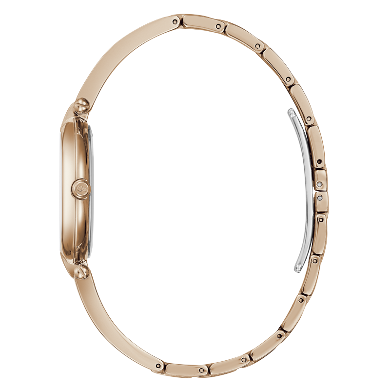 Adoptez un style élégant avec cette montre-bracelet en rose gold de taille moyenne, rehaussée d'accents en or rose et d'un cadran en nacre noir orné d'un logo ton sur ton. Le bracelet jonc laqué noir, avec son motif en rose gold assorti, complète parfaitement le design de la montre, pour un look à la fois sophistiqué et moderne.