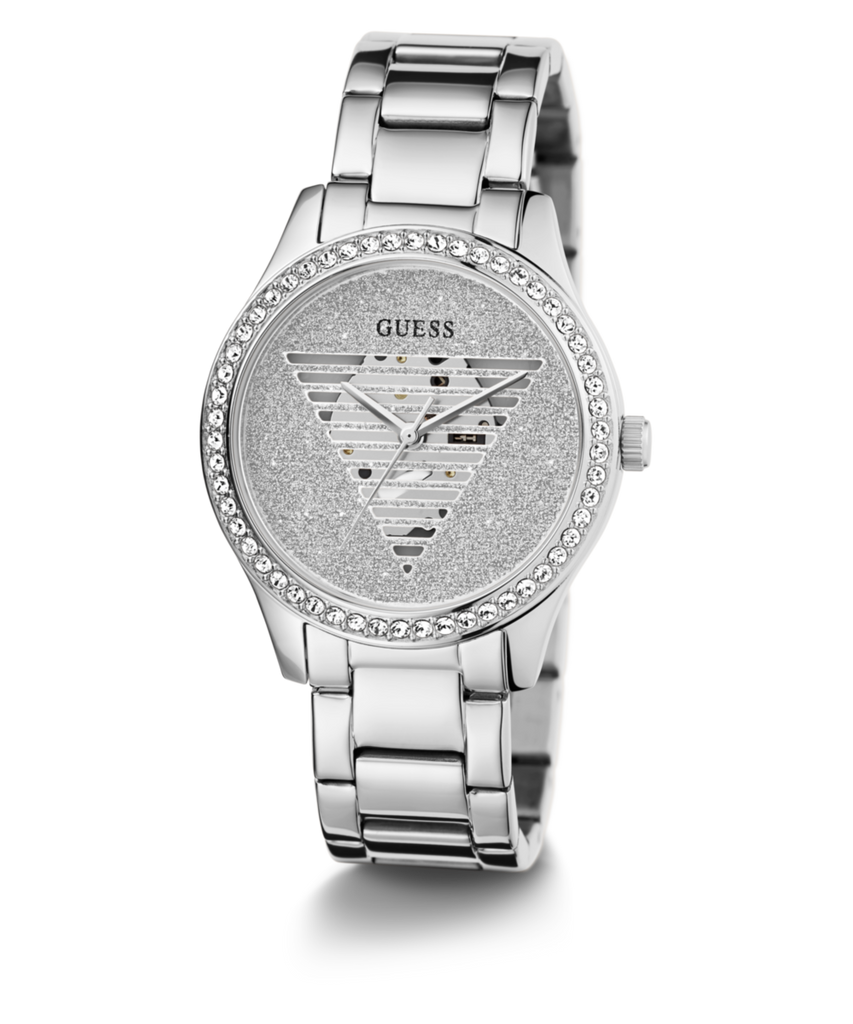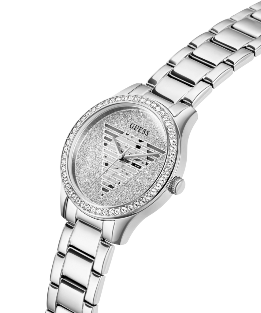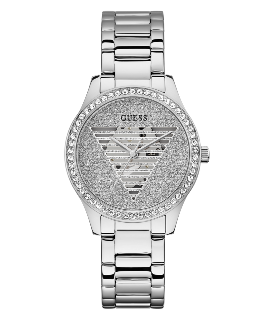 Une montre haut de gamme agrémentée d'un diamant symbolique pour chaque heure du jour ! Cette élégante montre argentée est embellie de 12 diamants authentiques qui indiquent les heures, en faisant d'elle l'accessoire glamour par excellence. Les montres GUESS offrent un style contemporain et audacieux tout en accordant une attention particulière aux détails. Elles sont conçues pour allier élégance et fonctionnalité en associant des matériaux de qualité à des designs innovants, créant ainsi des pièces uniques.