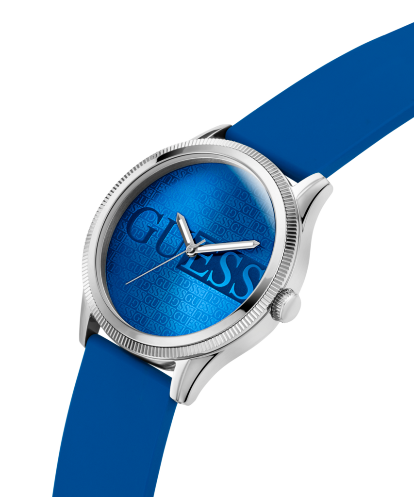 Laissez votre réputation vous précéder avec ce nouveau modèle Guess arborant un logo distinctif, associé à un bracelet en silicone lisse.