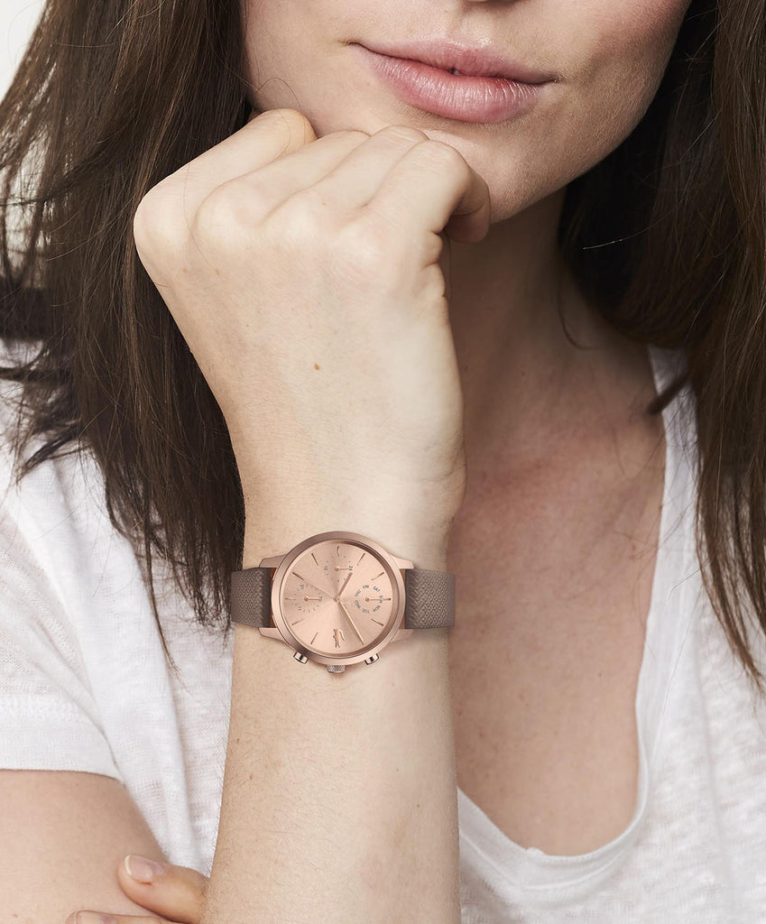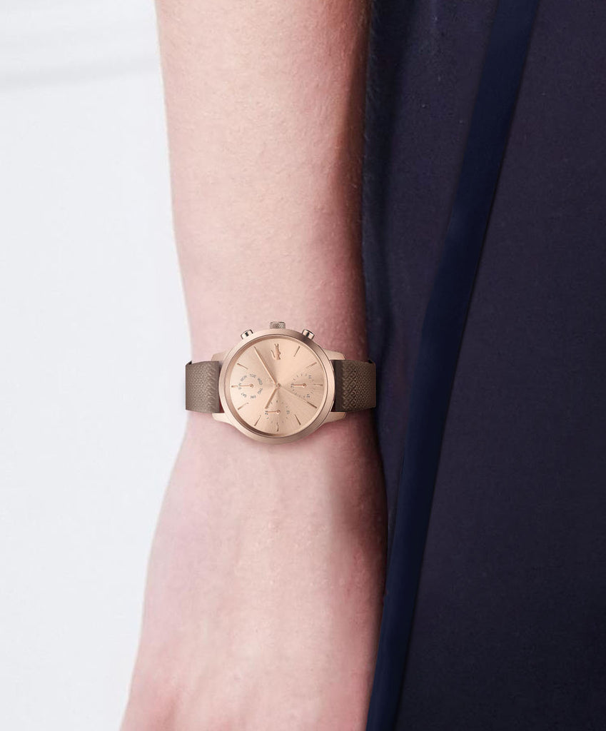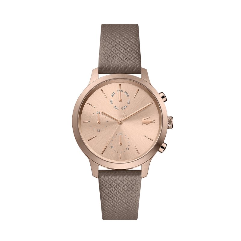 La famille de montres Lacoste 12.12 célèbre le style sportif en rendant hommage à l'iconique chemise polo L.12.12. Avec un design moderne de boîtier et de cadran, ces montres arborent des bracelets en cuir estampé petit piqué et un graphique représentant la célèbre chemise sur le fond du boîtier. Leur allure audacieusement monochrome en fait de véritables classiques de Lacoste.