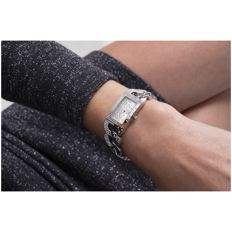 Cette montre est parfaite pour être portée seule ou pour être combinée avec vos bracelets préférés. Elle est ornée d'une rangée de cristaux sur le bracelet et de marqueurs de cristaux sur le cadran, ajoutant ainsi une touche d'élégance à votre poignet. Le bracelet à chaîne est également équipé de maillons auto-ajustables pour un ajustement parfait.on.