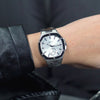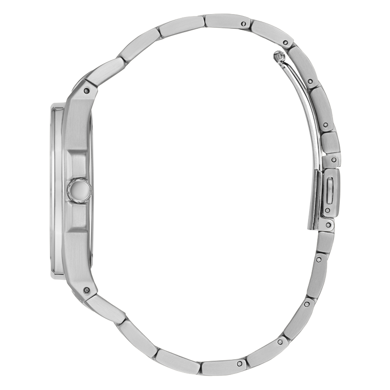 Ce boîtier octogonal en argent au design unique présente 6 détails de vis sur la lunette avec des finitions brossées et polies tout au long.