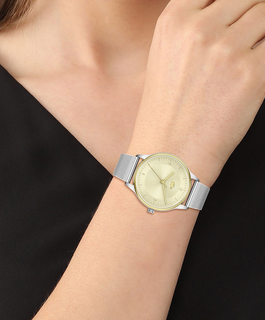 D'une élégance classique, la montre Lacoste Club est un modèle raffiné à trois aiguilles qui associe une finition haut de gamme au charme décontracté propre à la marque. Proposée avec un bracelet en cuir lisse ou un bracelet en maille dans un choix de teintes douces et féminines, cette montre arbore un cadran plissé saisissant, en clin d'œil à l'héritage sportif de Lacoste.