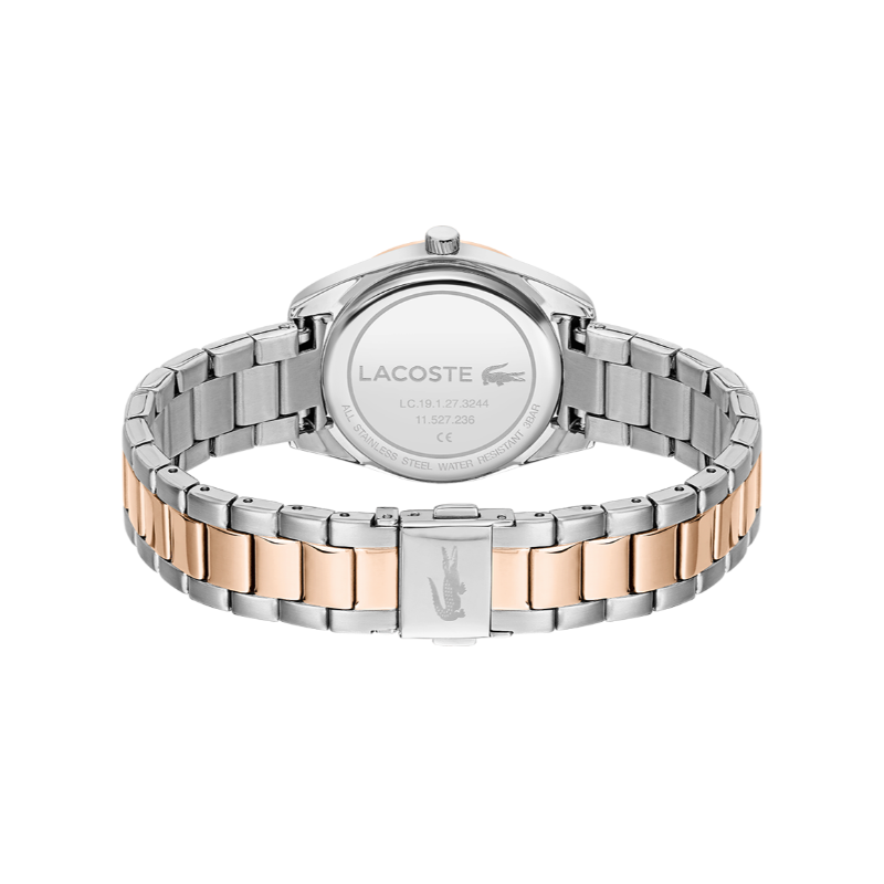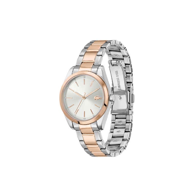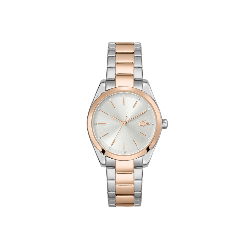 Un design sportif et féminin avec une lunette polie, la Petite Parisienne est une version plus petite de la Lacoste Parisienne. Son élégant cadran soleil avec un crocodile emblématique à 3 heures et des index incrustés de cristaux scintillants de Swarovski™ garantit que cette montre sophistiquée accompagnera so n propriétaire du jour à la soirée avec style.