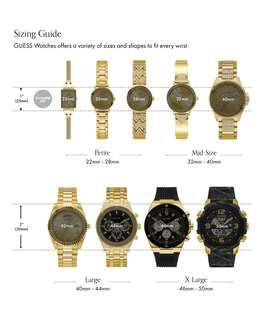 GUESS watches offre un style contemporain et audacieux avec une attention particulière aux détails. Les montres GUESS sont conçues pour être à la fois élégantes et fonctionnelles, en combinant des matériaux de qualité avec des designs innovants pour créer des pièces uniques