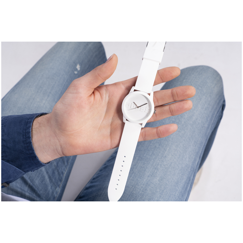 Si vous êtes fan de la marque GUESS, vous ne pouvez pas manquer cette montre qui a su séduire de nombreux amateurs. Son cadran est orné du logo de la marque en relief et est placé sur un boîtier en silicone agréable au toucher. Le bracelet en silicone assorti complète le design de cette montre.