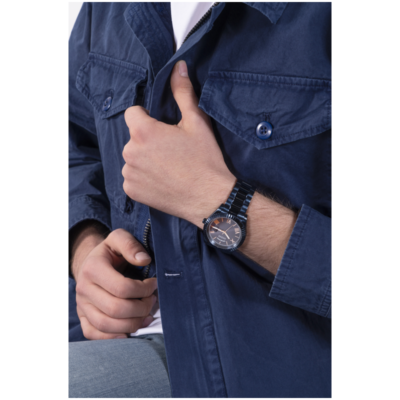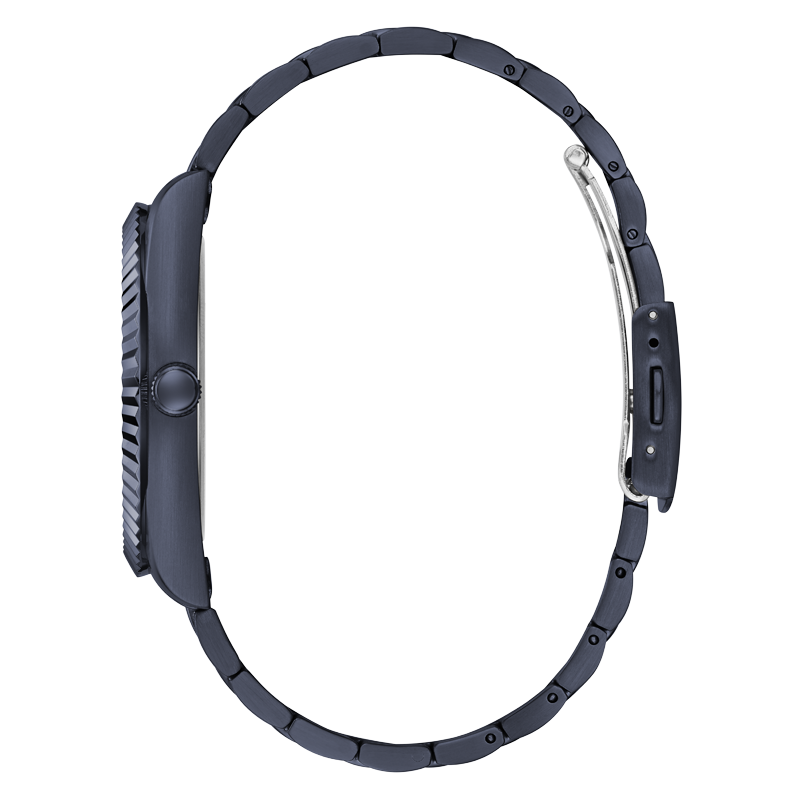 Un style classique qui ne se démode jamais. Cette lunette en bordure de pièce est intégrée à un bracelet à trois maillons brossé et poli, et dispose d'une fenêtre indiquant le jour de la semaine à midi, ainsi qu'un guichet de date à bulle à trois heures. Cette montre allie sobriété et fonctionnalité pour vous offrir un accessoire indémodable qui vous accompagnera avec élégance au quotidien.