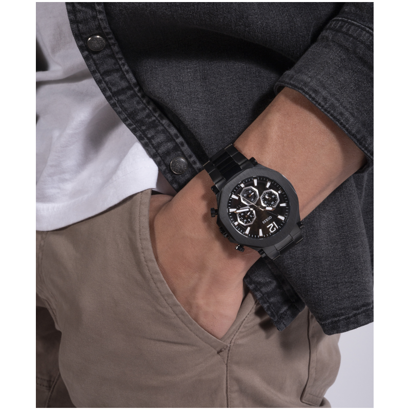 Cette montre au design original avec un boîtier octogonal et des détails de cadran découpés est équipée d'une élégante connexion de bracelet en forme de barre en T, pour un look à la fois tendance et innovant.