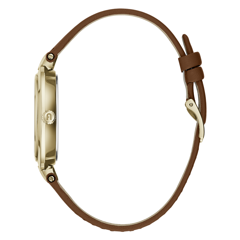 Le bracelet en cuir véritable de couleur marron ajoute une touche de chaleur à cette montre déjà éblouissante. Le mécanisme analogique assure une précision exceptionnelle pour vous accompagner à tout moment de la journée. Son boîtier poli en or complète ce bijou italien avec une touche de glamour supplémentaire. La boucle de bracelet assure un ajustement parfait et sécurisé à votre poignet.