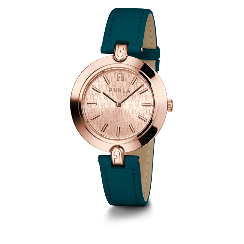 La montre FURLA LOGO LINKS (Référence WW00002008L3) est un élégant accessoire pour femmes. Dotée d'un boîtier en acier inoxydable de couleur Rose Gold de 34 mm de diamètre, elle présente un cadran Rose Gold qui ajoute une touche de sophistication à son design. Le bracelet en cuir véritable de couleur bleue offre un contraste subtil et agréable.