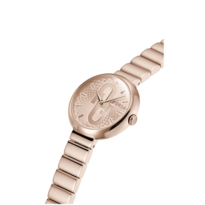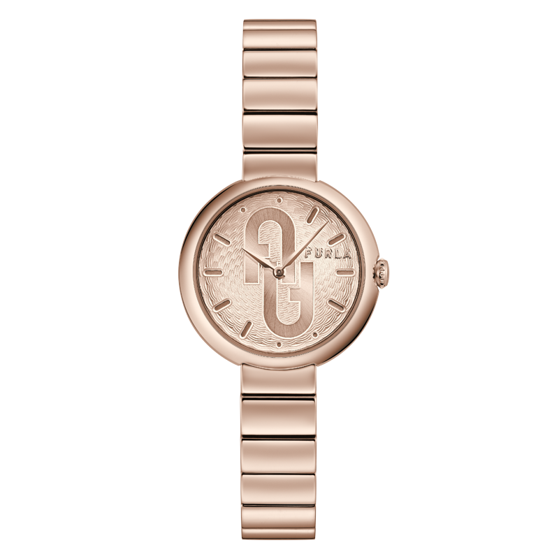 Découvrez la montre Furla COSY de la collection italienne Furla, représentant l'essence de l'élégance. Cette montre arbore un boîtier poli en acier inoxydable rose gold de 32 mm de diamètre, abritant un cadran champagne délicat. Le bracelet en acier inoxydable assorti est le reflet du raffinement de la collection.