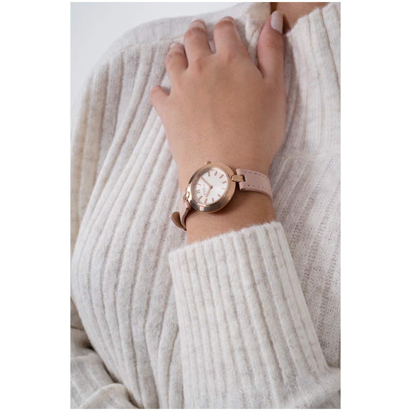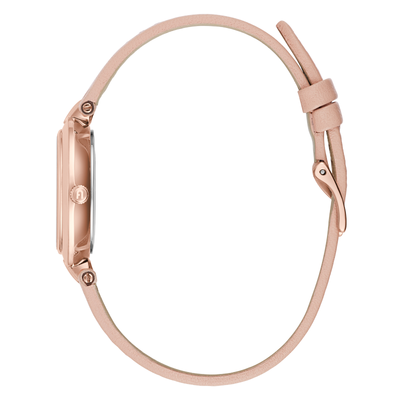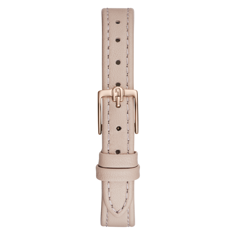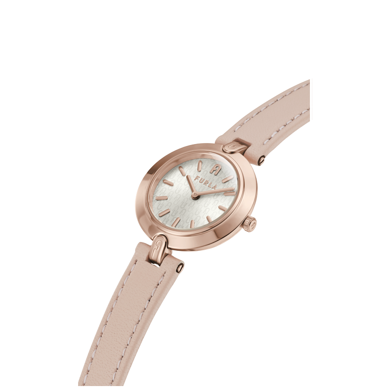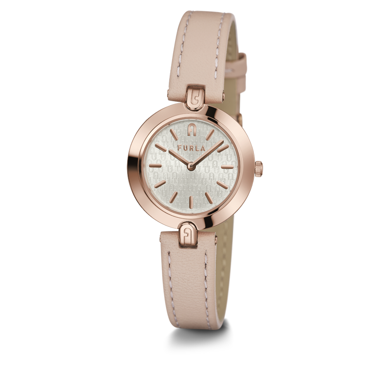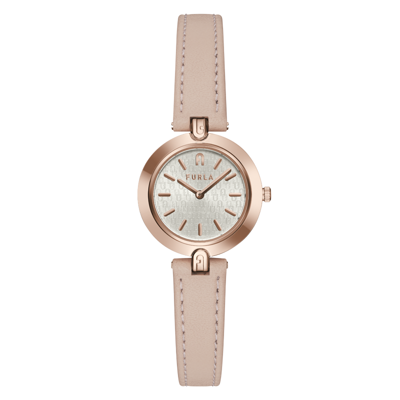 Découvrez la montre Furla LOGO LINKS (Référence WW00006003L3), une pièce d'horlogerie italienne qui incarne l'élégance. Son boîtier poli en acier inoxydable rose gold de 28 mm de diamètre abrite un cadran argenté lumineux. Le bracelet en cuir véritable 'Nude' ajoute une touche de raffinement à ce modèle féminin.