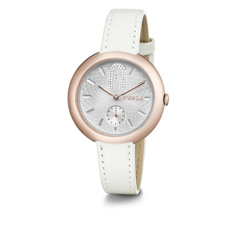 La montre FURLA COSY SECONDS est une montre pour femme élégante et raffinée, fabriquée en Italie par la marque Furla, connue pour son excellence en matière de design et de qualité.
