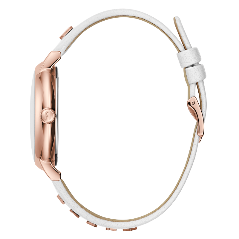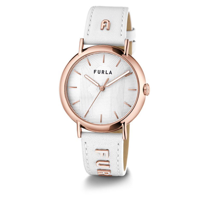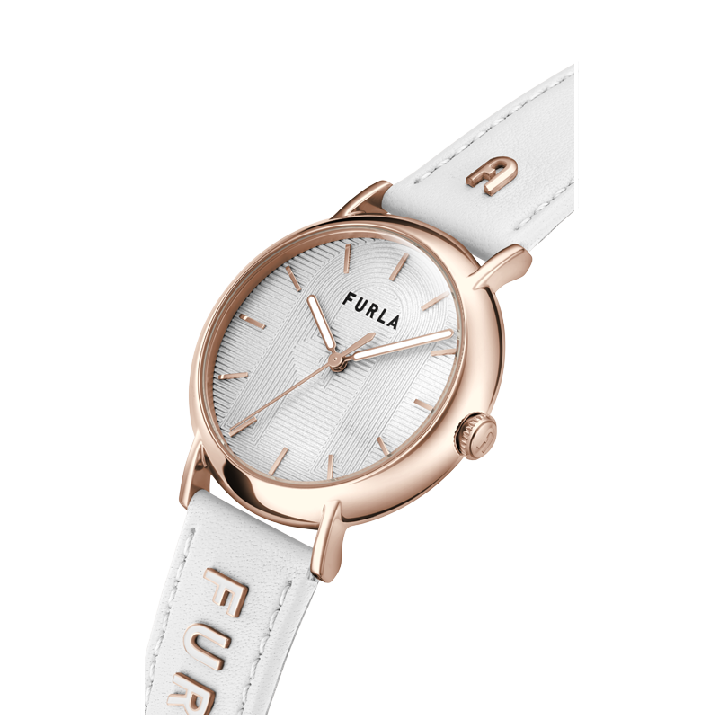 La Montre Femme Furla WW00023021L3 incarne l'élégance italienne avec son design épuré et ses fonctionnalités de qualité. Cette pièce horlogère arbore un boîtier en acier inoxydable de 38 mm, délicatement rehaussé par une finition Rose Gold, qui offre un contraste magnifique avec le cadran Blanc d'une pureté exquise.